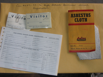 Right: Obsolete, vandalized computer equipment.We found this pamphlet in Washburne. We don’t know the exact date, but based on the names at the bottom, and the graphic design style, the late 1950s or early 1960s is our best educated guess.