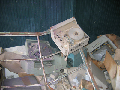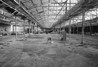 Left: This is the second floor of the main building, facing west. The garage/warehouse seen in the image above this one was located on the left hand side of this image. Demolition encroaches…