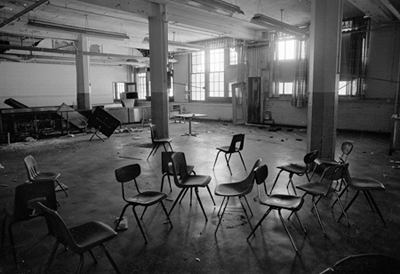 The Liquid Carbonic/Washburne Trade School buildings have been vacant since 1996. We first visited the factory in 2002 and have returned a number of times since. The four following photographs are from 2002/03, prior to any demolition work.