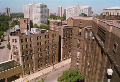 The Nurses’s residence and school building, and the Mandel Clinic as seen from the roof of Main Reese.