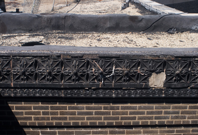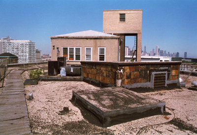 Two views on the roof of the building. The house-like structures were at one point once solariums, according to early fire insurance maps.